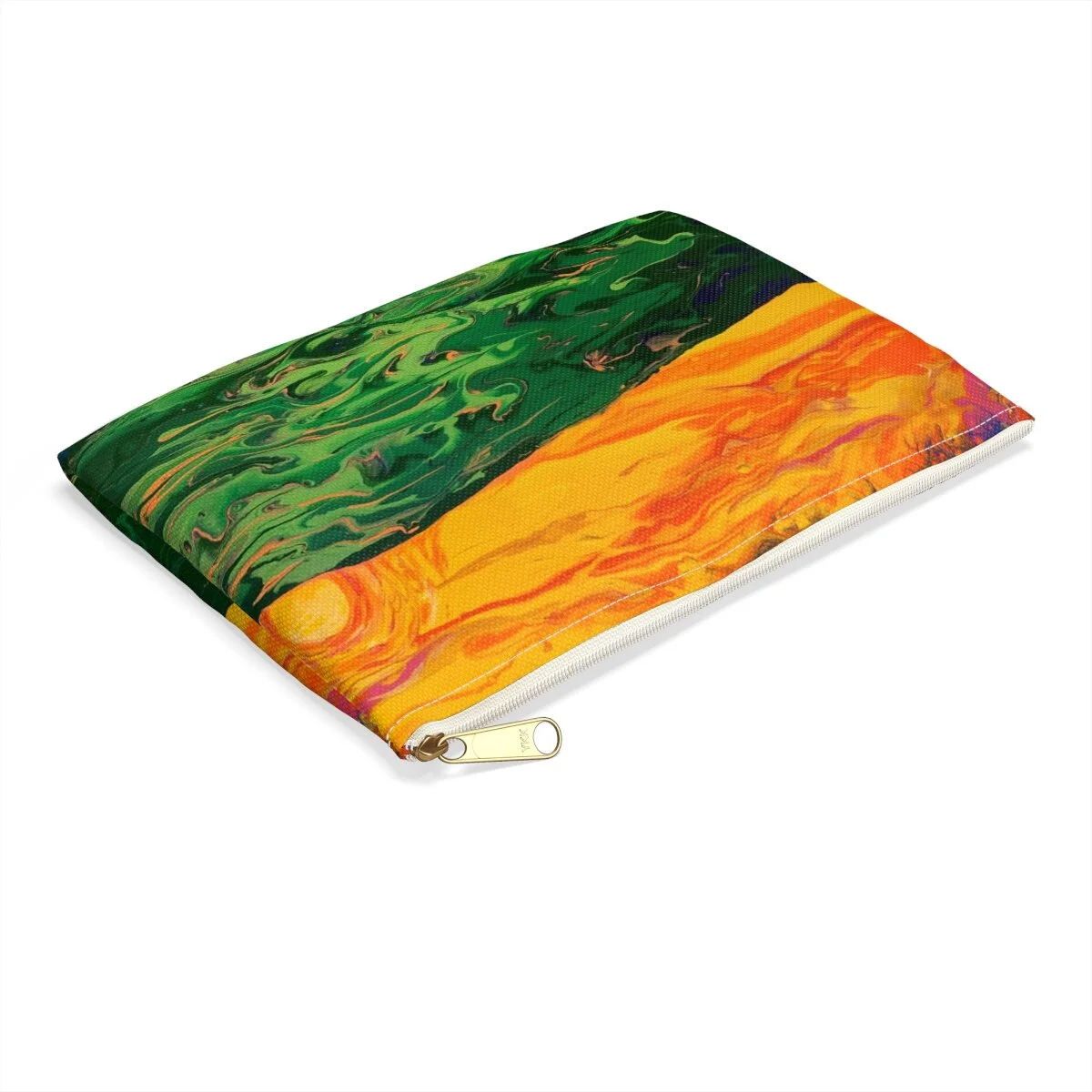 Designed to be chic and highly portable, this 6.3” x 4” mini personalized clutch bag is made for the fashionista on the go. It can hold everyday essentials such as money or credit cards. It features a zip fastener and it is made of vegan, cruelty-free leather that displays the beautiful artwork "River of Dreams" by Emily Glass on both sides.